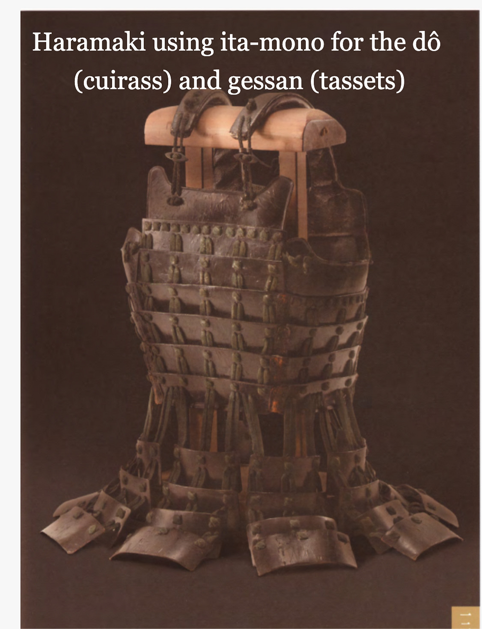 It is worth noting that while a dô may use ita-mono, the kusazuri (tassets) could still use kozane or kiritsukesane for example, or use sugake lacing for the dô but kebiki lacing for the kusazuri. In other words, it is also historical to mix and match them.